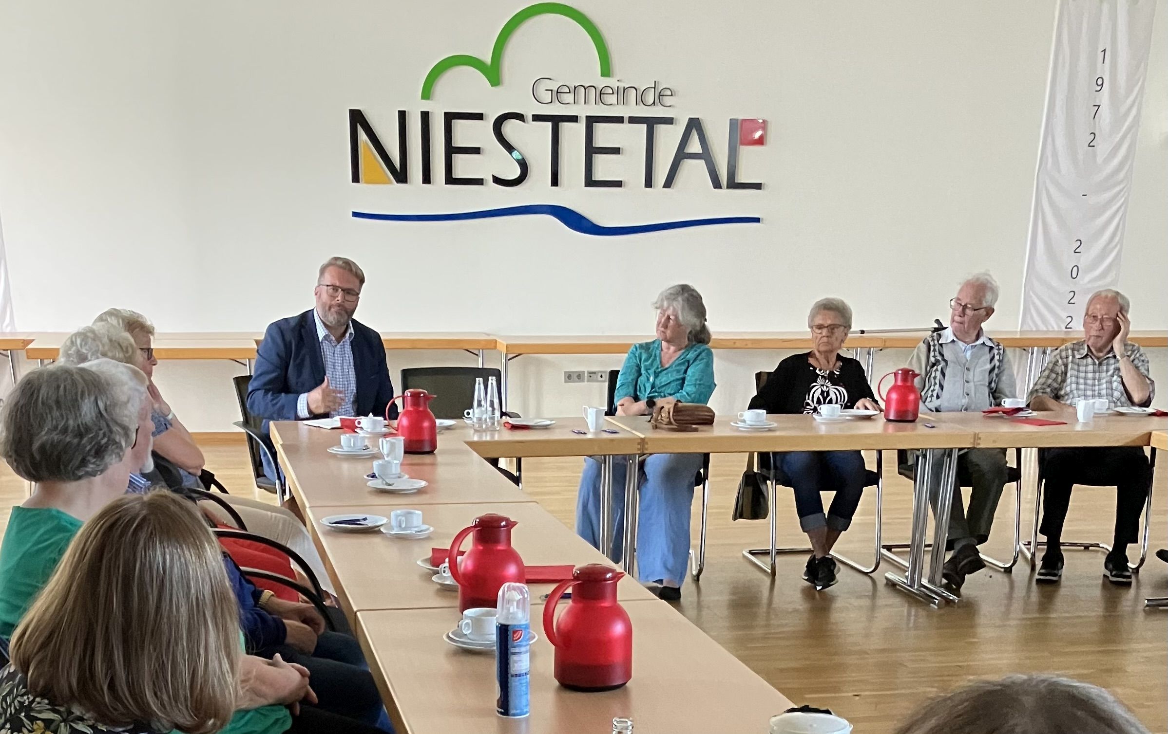 Im August nahm Bürgermeister Marcel Brückmann am Treffen teil. Er wurde mit vielfältigen Fragen zu verschiedenen Themen konfrontiert. Zur Sprache kamen unter anderem die gesperrte Friedhofshalle, ungepflegte Wege auf den Friedhöfen sowie wucherndes Unkraut auf den gemeindlichen Grün- und Blühflächen. Es wurde angemerkt, dass viele Gehwege aufgrund ungeschnittener Hecken unpassierbar seien. Auch die seit Jahren fehlende Begrünung der Lärmschutzwände wurde kritisch angesprochen. Die Teilnehmenden trugen konkrete Hinweise und Lösungsvorschläge bei, etwa zur Mitfahrbank in Heiligenrode, die derzeit an einer Stelle steht, an der kein Auto anhalten kann.